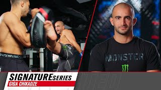 As a professional kickboxer, he won 38 of his 44 matches, 22 by knock-out. Still, due to promotional hitches with K-1 Kickboxing and reduced income after moving to Glory Kickboxing, in 2016 he started seeking new opportunities to refocus his career. Initially considering boxing, a series of coincidences brought him to Kings MMA in Southern California, where he met jujitsu master and lightweight MMA fighter Benil Dariush. The two quickly became friends. Suddenly everything fell into place. Discovering MMA rekindled Giga’s childhood memories of a UFC videotape that his dad had rented: